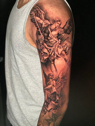 I specialize in anything illustrated and creative with a mix of realism. I love both black and grey tattooing as well as color.